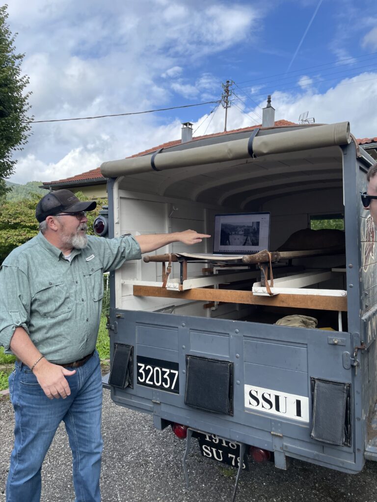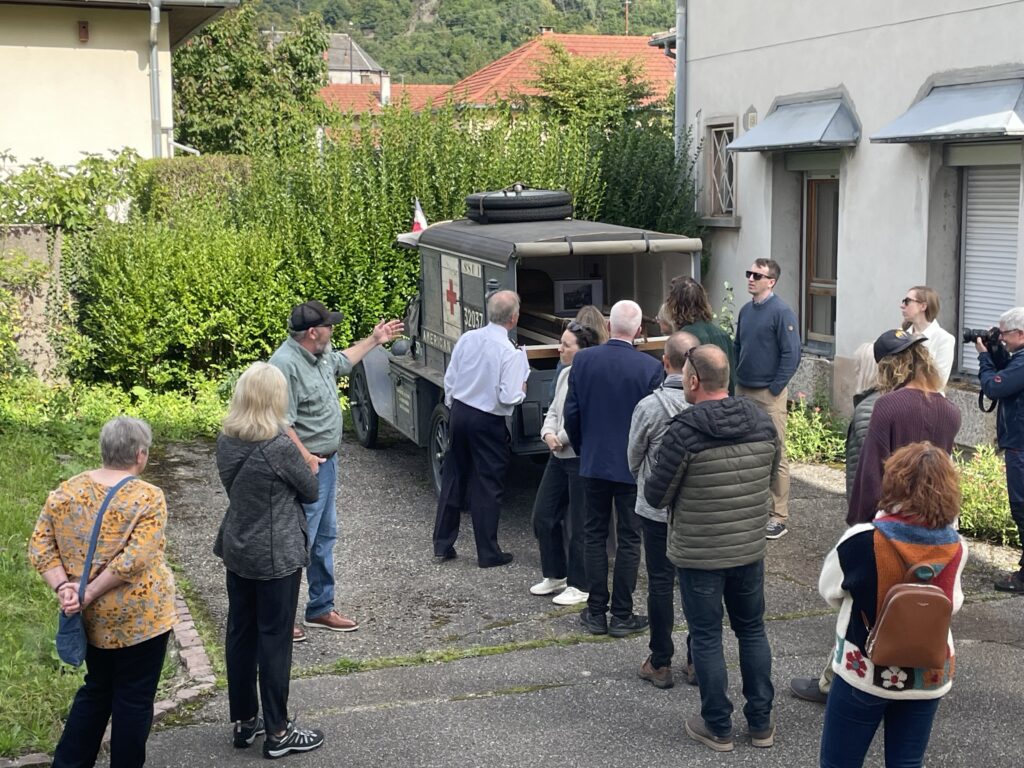 Ses descendants, accompagnés d’un historien travaillant à la rédaction d’un livre sur cette période, sont venus se recueillir et partager la mémoire de leur aïeul. Pour l’occasion, ils ont présenté une ambulance restaurée d’époque, semblable à celles utilisées par les volontaires américains.
