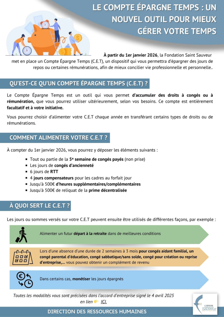 Envie de capitaliser du temps ou de l’argent pour vos projets, un congé ou préparer votre fin de carrière ? Le CET vous offre flexibilité et sérénité pour gérer votre temps de travail tout en conciliant vie pro et vie perso.