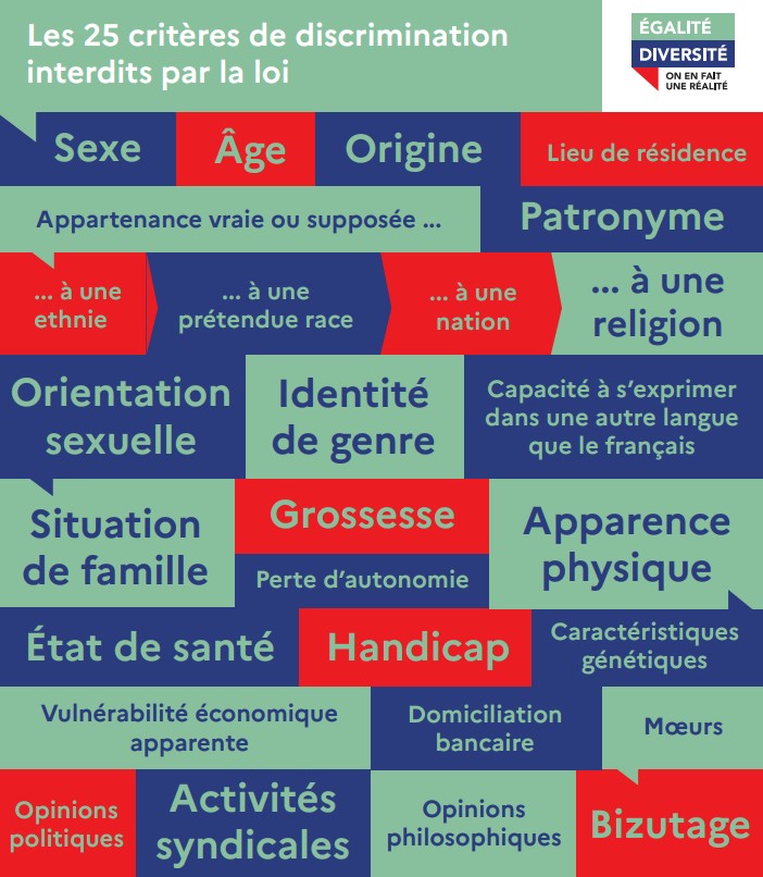 La discrimination est strictement interdite par le Code du travail et le Code pénal.